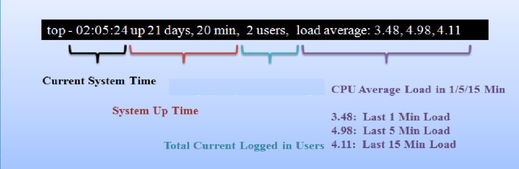 As a terminal equivalent to Task Manager in Windows, the top command will display a list of running processes and how much CPU each process uses. It’s very useful to monitor system resource usage, especially knowing which process needs to be terminated because it consumes too many resources.