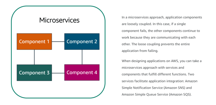 This is loosely coupled. This is what we strive to achieve with architectures on AWS. And this brings me to two AWS services that can assist in this regard. Amazon Simple Queue Service or SQS and Amazon Simple Notification Service or SNS. But before I dive into those two services, let me just order a to-go coffee on our cafe website. Done. All right, well, that’s great. I should get a message when that order is ready.