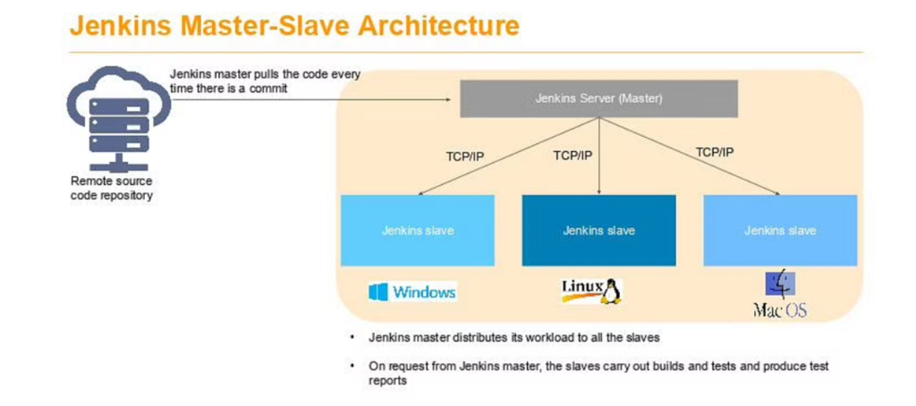 - Jenkins manages the builds with the help of master-slave architecture. Master and slave units communicate with each other using IP/TCP protocol. Here is a little download on how it all works.