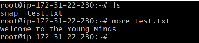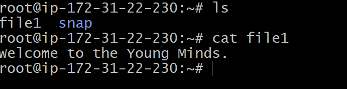 - To display the file content, execute the cat command as follows:
