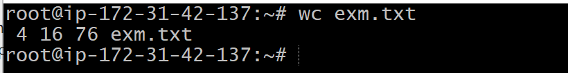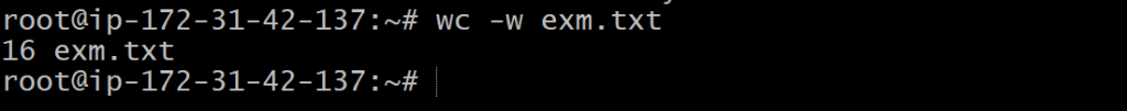 The above command will display the total number of words from the file ‘exm.txt’. Consider the below output: