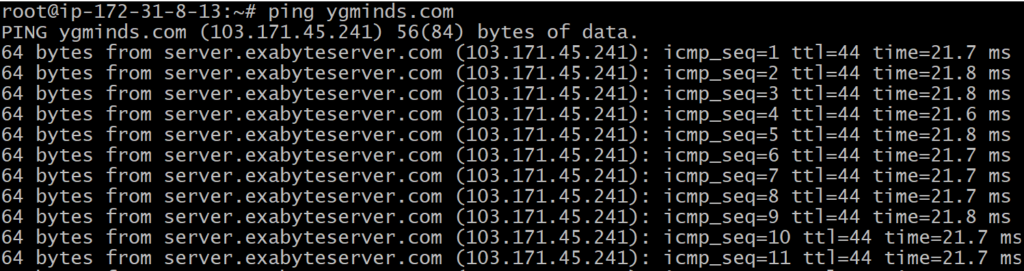 We can limit the number of sent packets by using the ping command. To limit the packet, specify the ‘c’ option followed by the number of packets to be sent. It will be executed as: