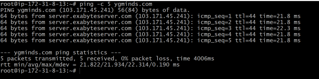 Ping -c 5 ygminds.com